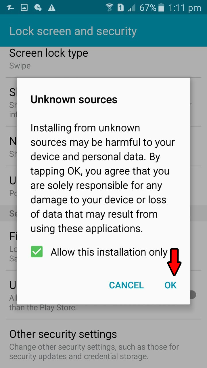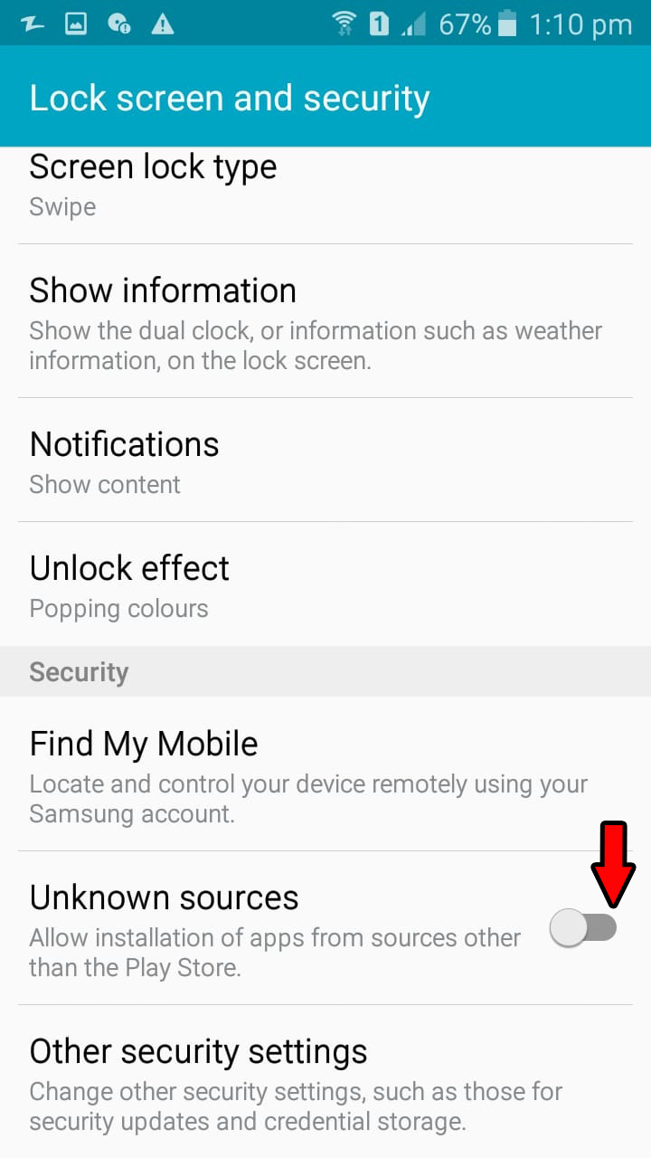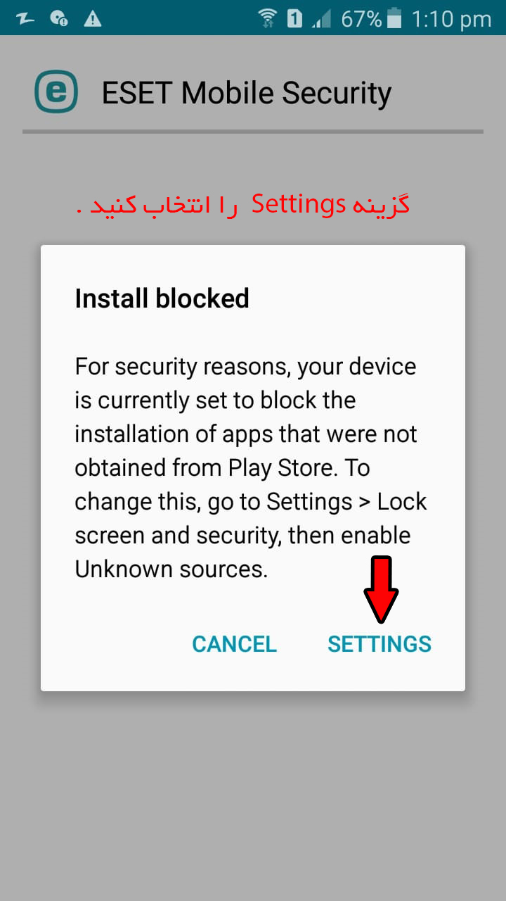 4- با توجه به اینکه برنامه آنتی ویروس را بصورت مستقیم و مستقل از Play Store گوگل نصب میکنیم باید گزینه Unknown sources در تنظیمات گوشی فعال باشد . درصورت غیر فعال بودن این گزینه میتوانید Unknown sources را از مسیر زیر فعال کنید : Setting> Lock screen and security
