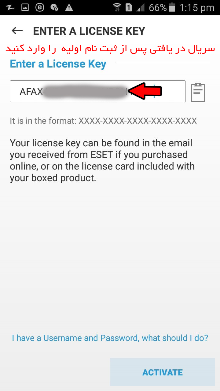 جهت فعال سازی نرم افزار ، Licence key را طبق راهنمای زیر در آنتی ویروس وارد نمائید .