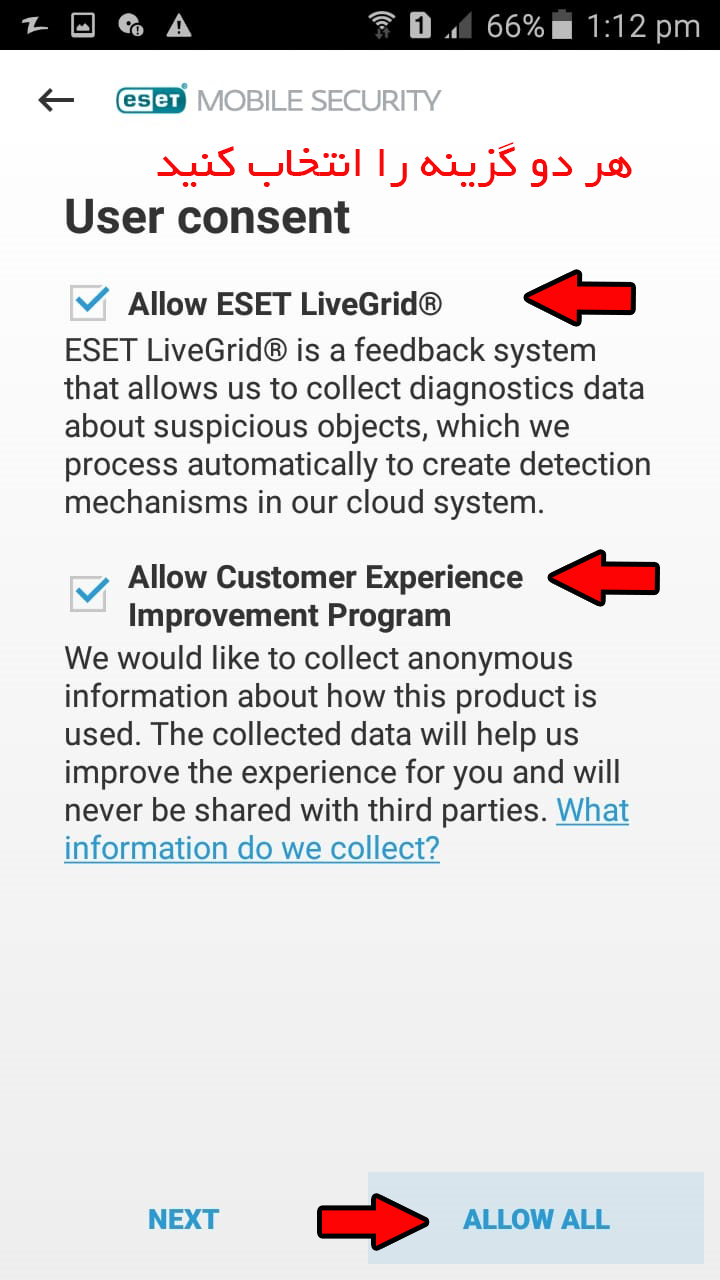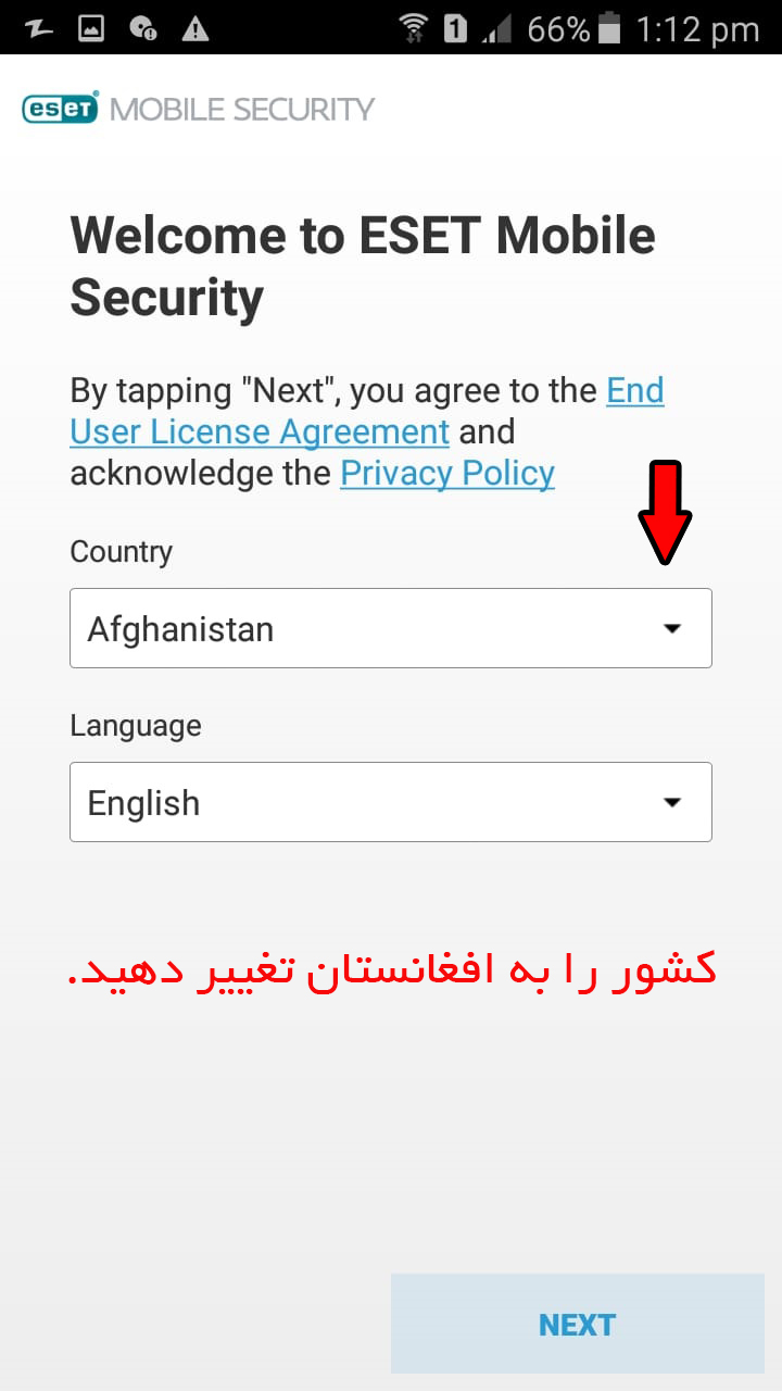 3- پس از دانلود با اجرای فایل نصب آنتی ویروس در گوشی یا تبلت ، مراحل نصب را به ترتیب زیر انجام دهید ، تا نصب برنامه تکمیل شود.(نکته بسیار مهم : در تنظیمات نصب ، Country باید کشوری به غیر از ایران انتخاب گردد مثلا" افغانستان یا ارمنستان ، در غیر اینصورت آنتی ویروس فعال نخواهد شد).